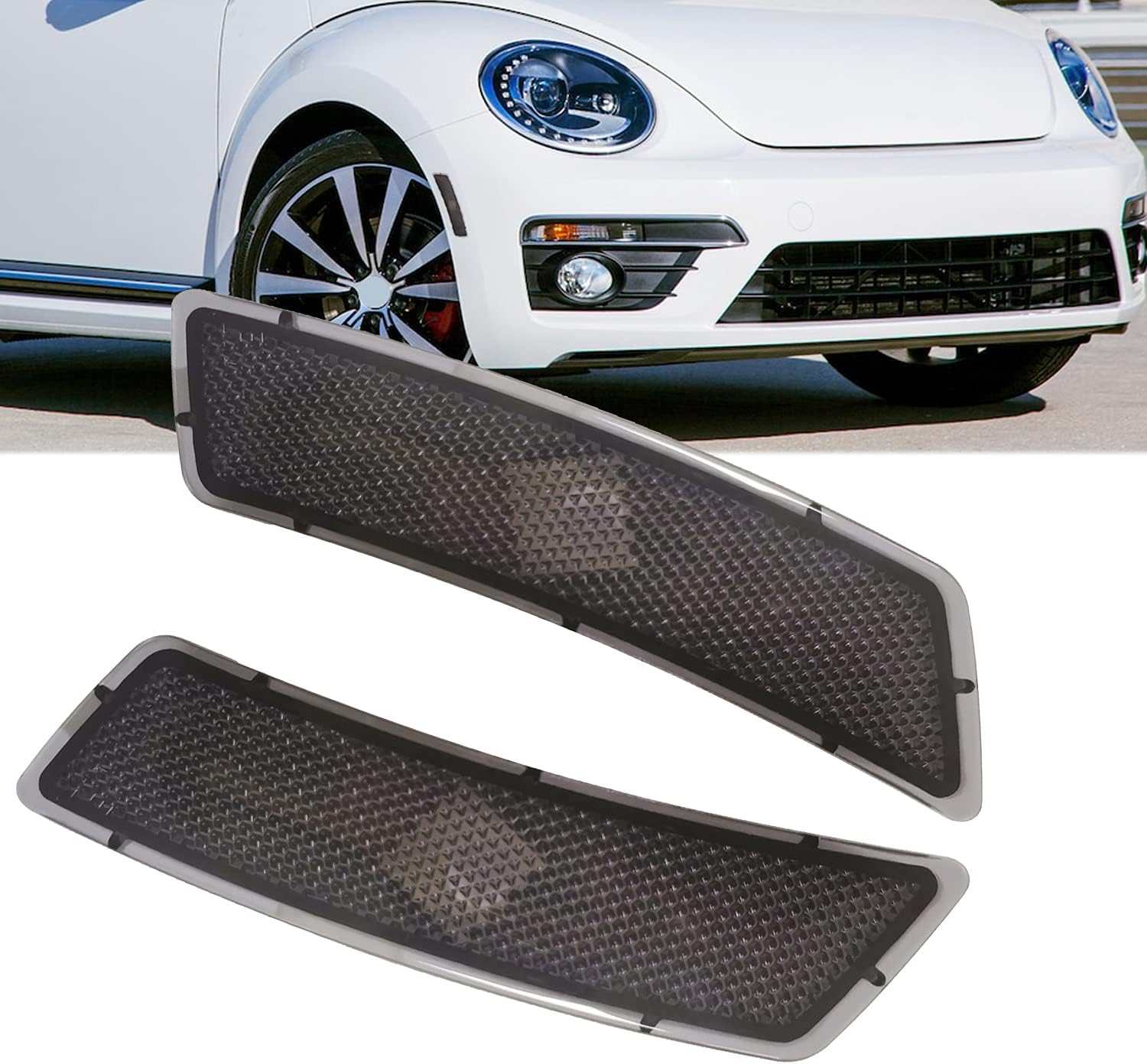 Features: Lens Color: Amber.Smoked,Clear Ultrasonically sealed, waterproof. Brand new and high quality. Super bright,faster on/off response time for driving safety. Item is the totally the same as the pictures. DOT & SAE Approved Material: ABS+PC Bulb:T10 W5W(Not include) Replace OEM # 5C5-945-071-A 5C5-945-072-A Other Part number:5C5945071A,5C5945072A, Compatible with : Beetle 2012-2019 Tiguan 2018-2021 Packing Include: 2x OEM Front Bumper Side Marker Light Housing
